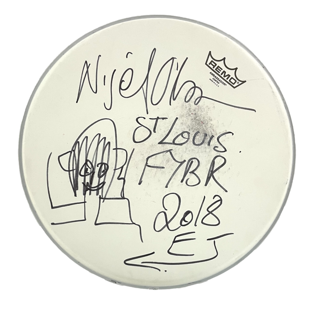 Nigel Olsson Signed Autograph 14" Stage Used Drumhead w/ Elton John Sketch JSA
