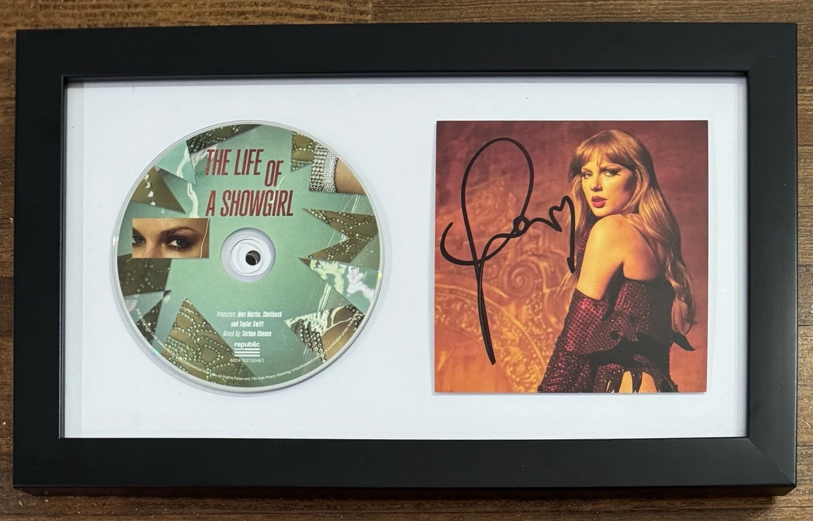 FRAMED AUTOGRAPH HEART TAYLOR SWIFT LIFE SHOWGIRL PICTURE #3 CD BAS BECKETT COA