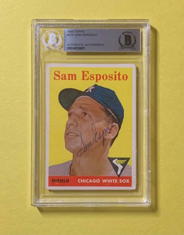1958 TOPPS SAM ESPOSITO #425 AUTHENTIC AUTO BECKETT CERTIFIED COLLECTIBLE MEMORABILIA