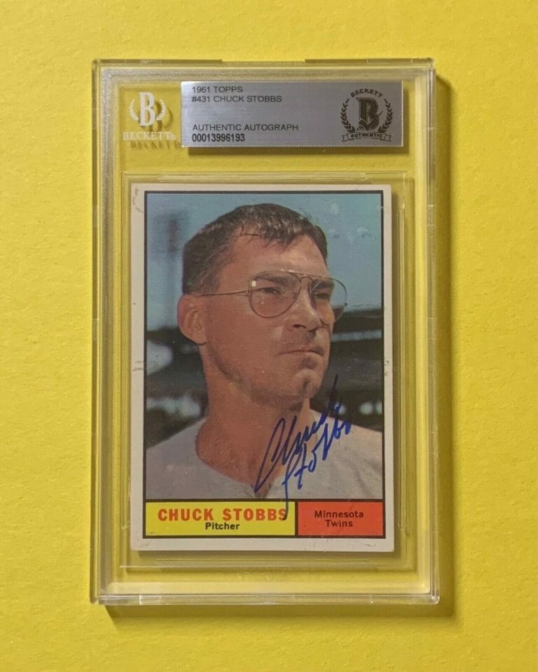 1961 TOPPS CHUCK STOBBS #431 AUTHENTIC AUTO BECKETT CERTIFIED TWINS COLLECTIBLE MEMORABILIA