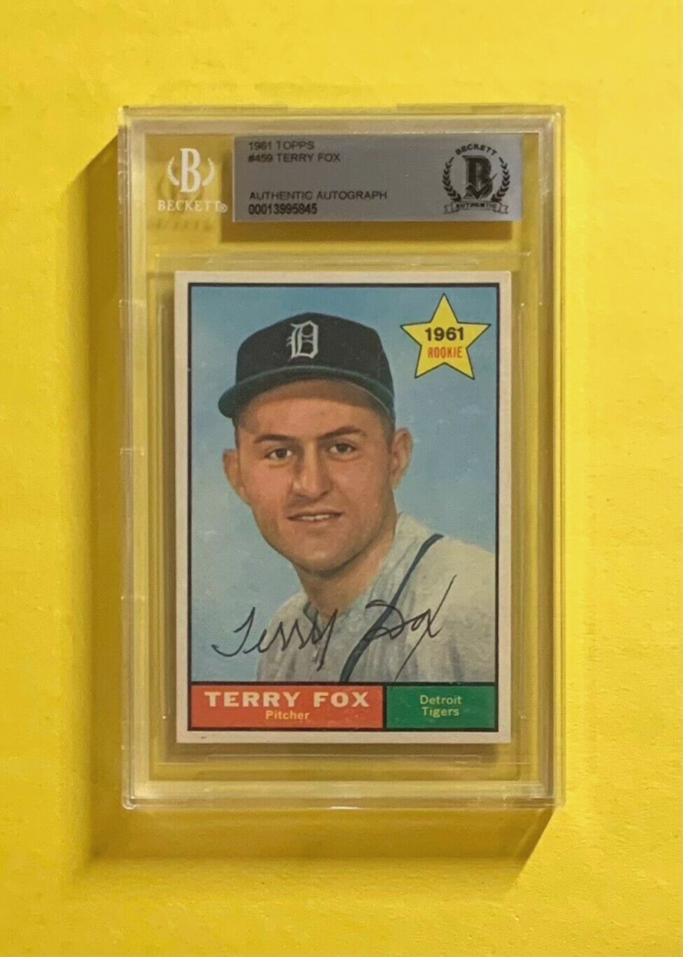 1961 TOPPS TERRY FOX #459 AUTHENTIC AUTO BECKETT CERTIFIED TIGERS COLLECTIBLE MEMORABILIA