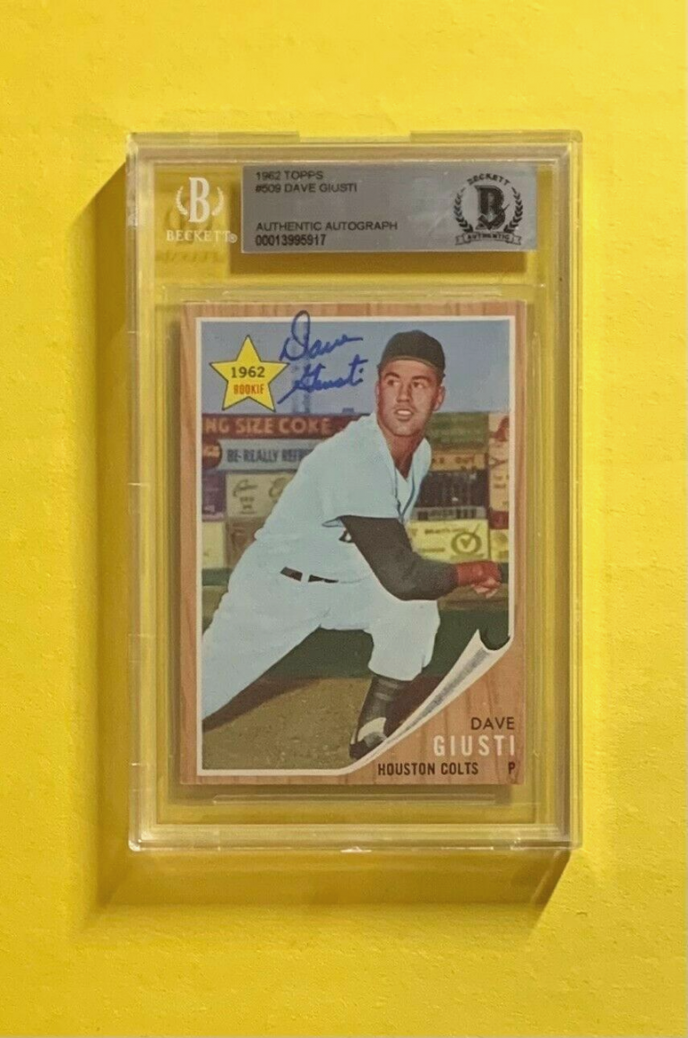 1962 TOPPS DAVE GIUSTI ROOKIE #509 AUTHENTIC AUTO BECKETT CERTIFIED COLTS COLLECTIBLE MEMORABILIA