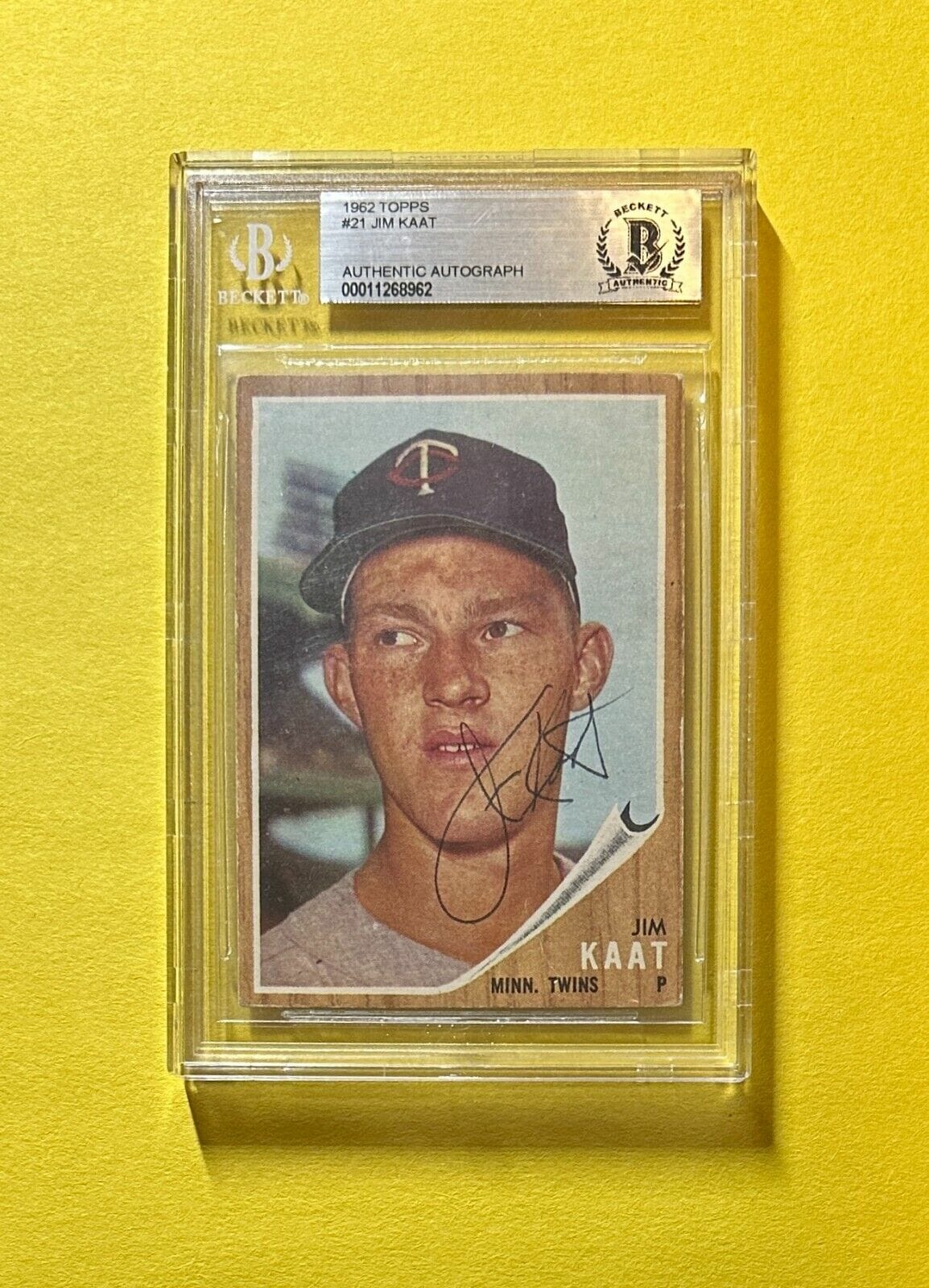 1962 TOPPS JIM KAAT #21 AUTHENTIC AUTO BECKETT CERTIFIED TWINS COLLECTIBLE MEMORABILIA