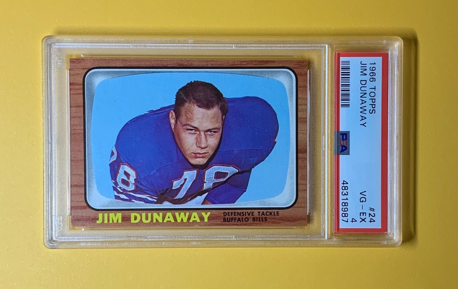 1966 TOPPS JIM DUNAWAY BILLS VG-EX PSA 4 COLLECTIBLE MEMORABILIA