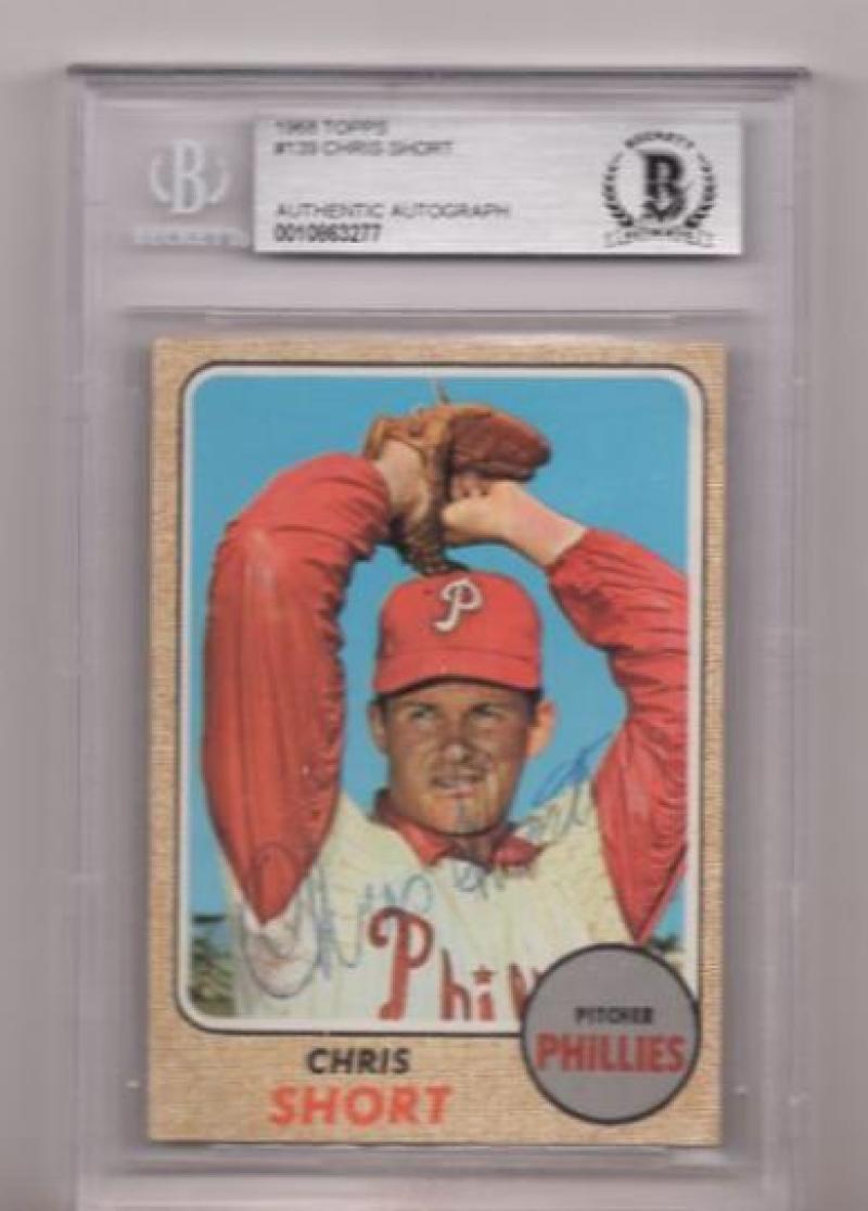 1968 TOPPS CHRIS SHORT PHILLIES SIGNED CARD BECKETT AUTHENTIC AUTO VINTAGE COLLECTIBLE MEMORABILIA