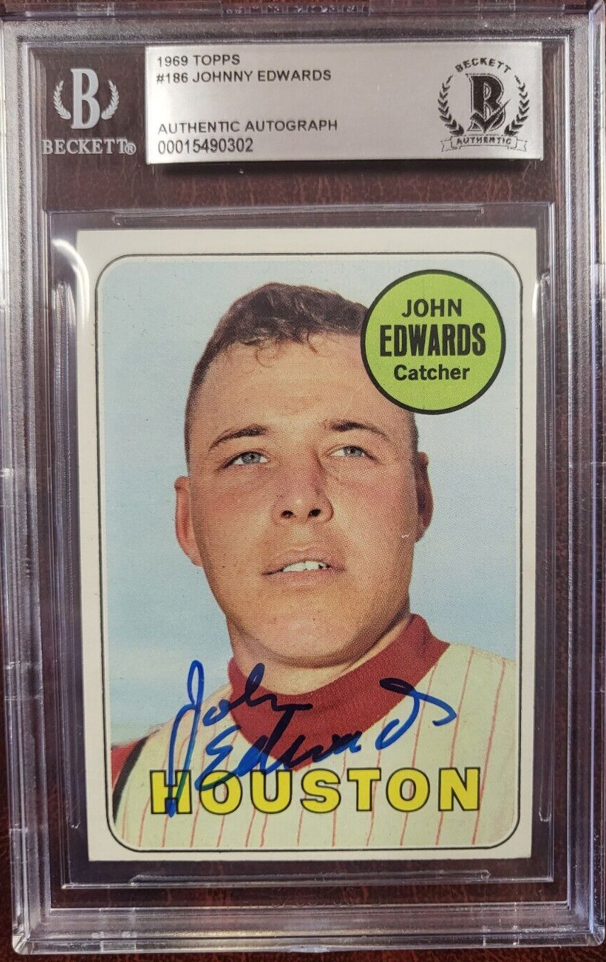 1969 TOPPS JOHNNY EDWARDS ASTROS SIGNED AUTO #186 CARD BECKETT AUTHENTIC COLLECTIBLE MEMORABILIA
