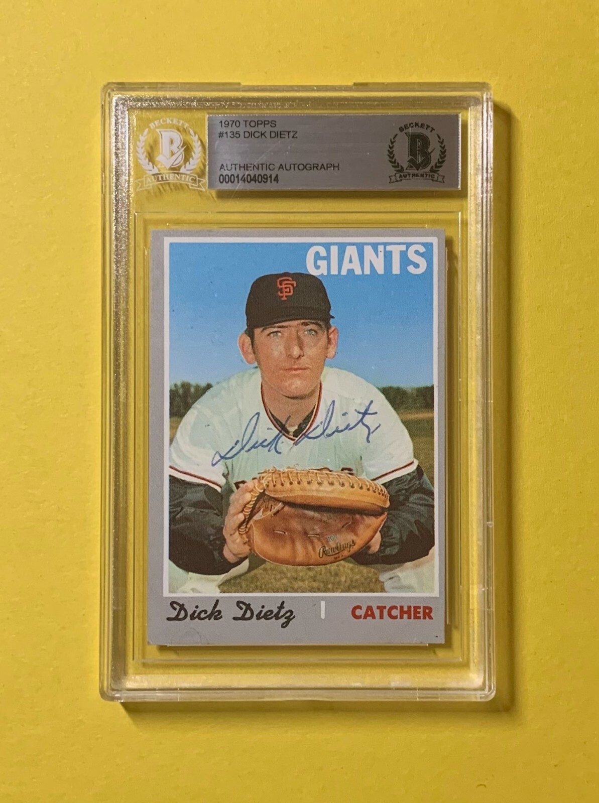1970 TOPPS DICK DIETZ #135 AUTHENTIC AUTO BECKETT CERTIFIED GIANTS COLLECTIBLE MEMORABILIA