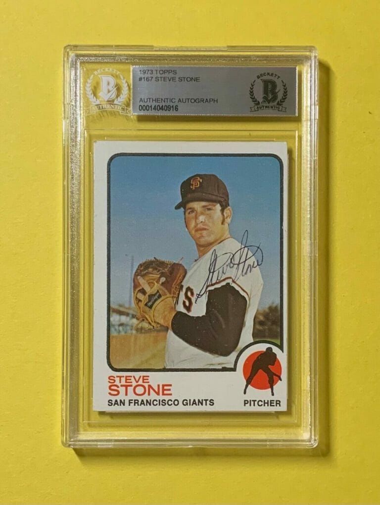 1973 TOPPS STEVE STONE #167 AUTHENTIC AUTO BECKETT CERTIFIED GIANTS COLLECTIBLE MEMORABILIA
