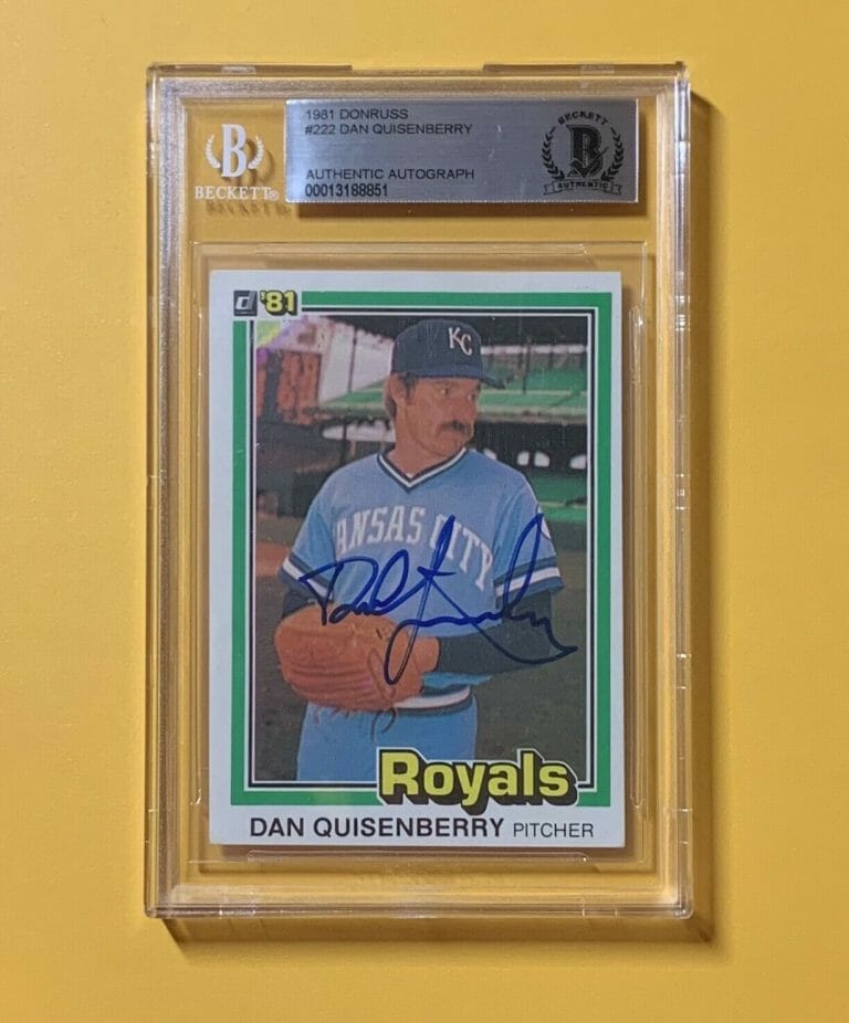 1981 DONRUSS DAN QUISENBERRY #222 AUTHENTIC AUTO BECKETT CERTIFIED ROYALS COLLECTIBLE MEMORABILIA