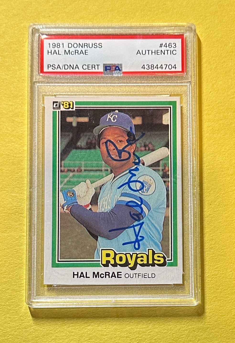 1981 DONRUSS HAL MCRAE #463 PSA AUTHENTIC AUTOGRAPH COLLECTIBLE MEMORABILIA