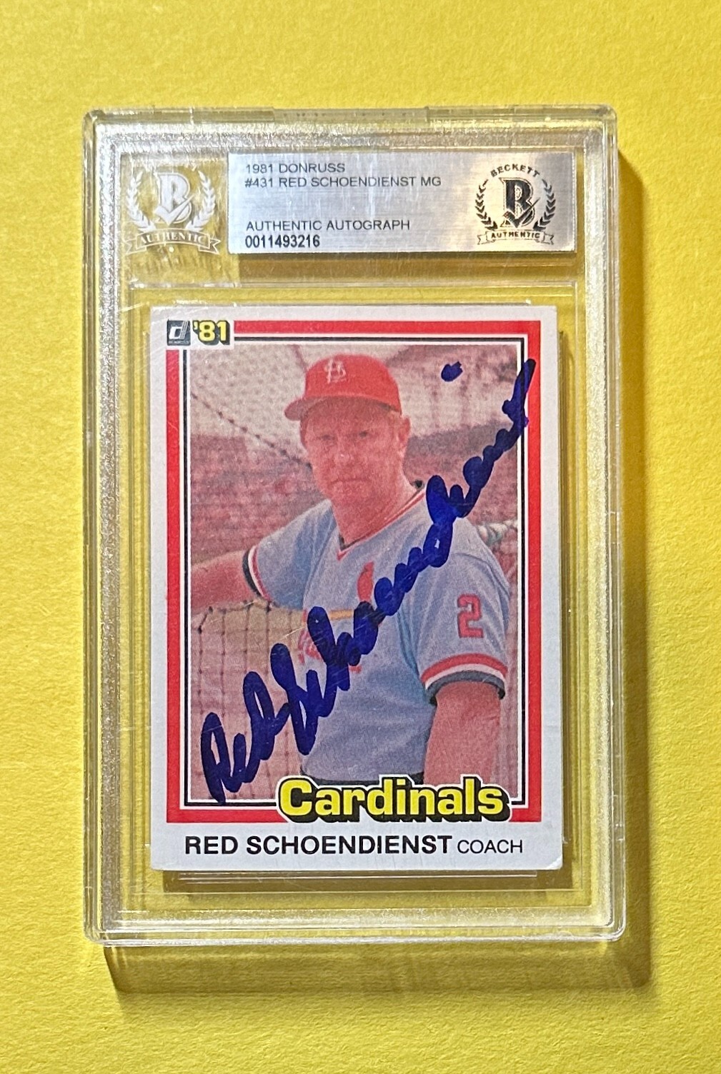 1981 DONRUSS RED SCHOENDIENST #431 BECKETT AUTHENTIC AUTO COACH HOF COLLECTIBLE MEMORABILIA