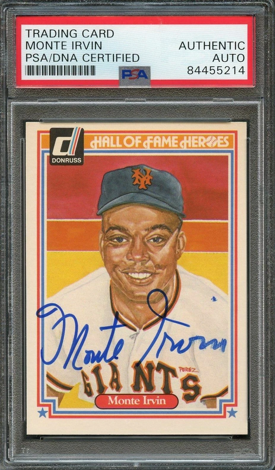 1983 DONRUSS #15 MONTE IRVIN SIGNED SCORE CARD PSA SLABBED AUTO GIANTS COLLECTIBLE MEMORABILIA