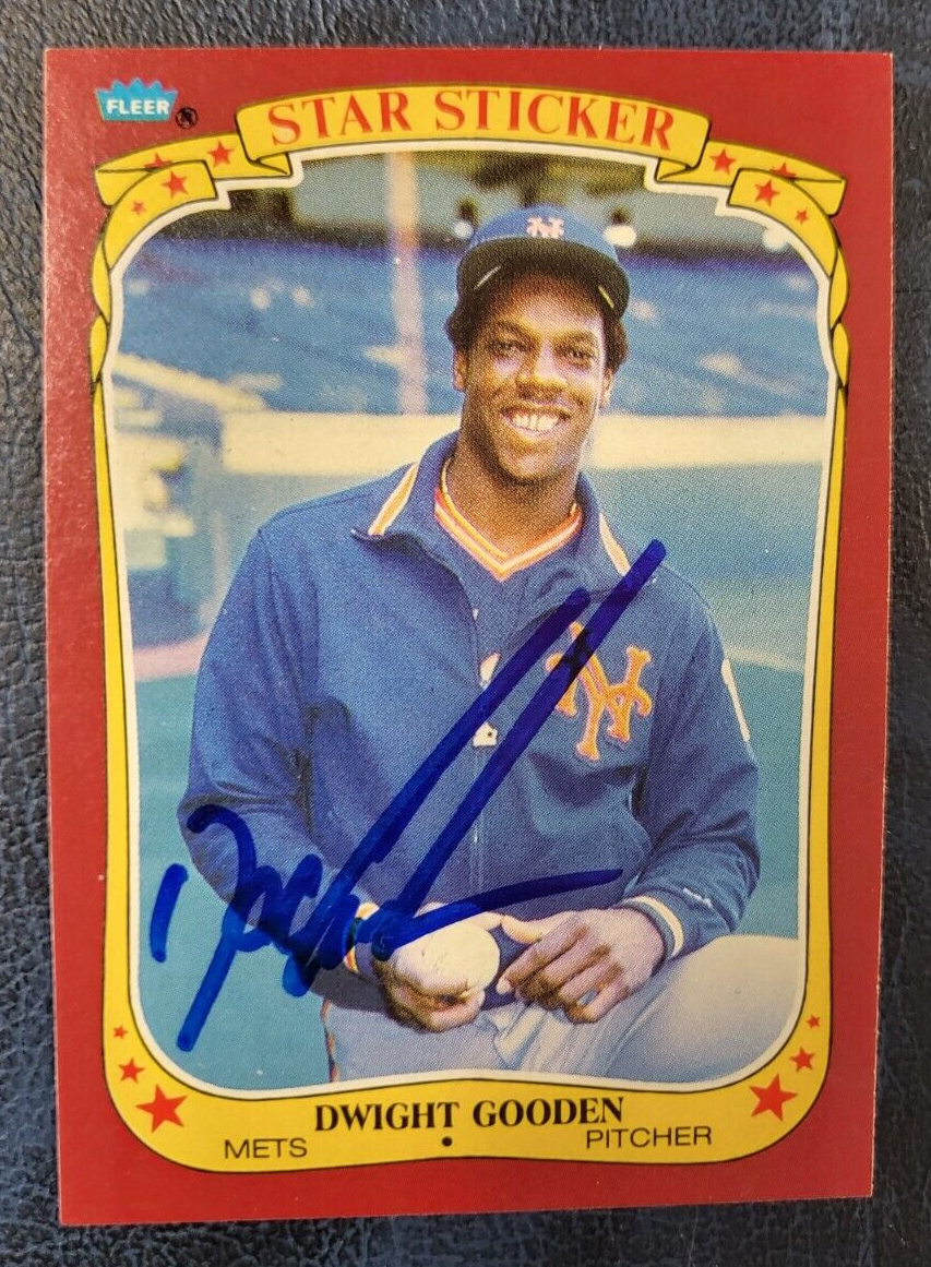 1986 FLEER STAR STICKER DWIGHT GOODEN METS SIGNED AUTOGRAPHED CARD #46 W/COA COLLECTIBLE MEMORABILIA