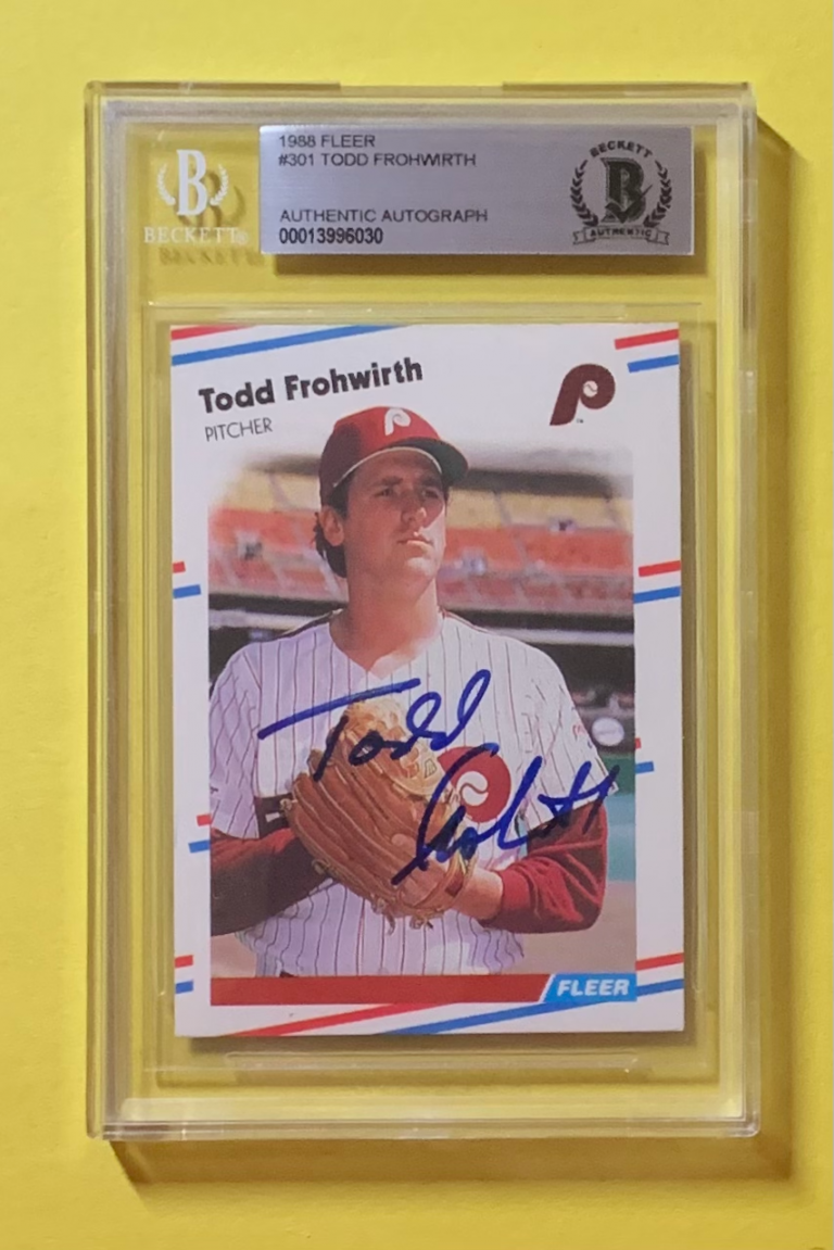 1988 FLEER TODD FROHWIRTH #301 AUTHENTIC AUTO BECKETT CERTIFIED PHILLIES COLLECTIBLE MEMORABILIA