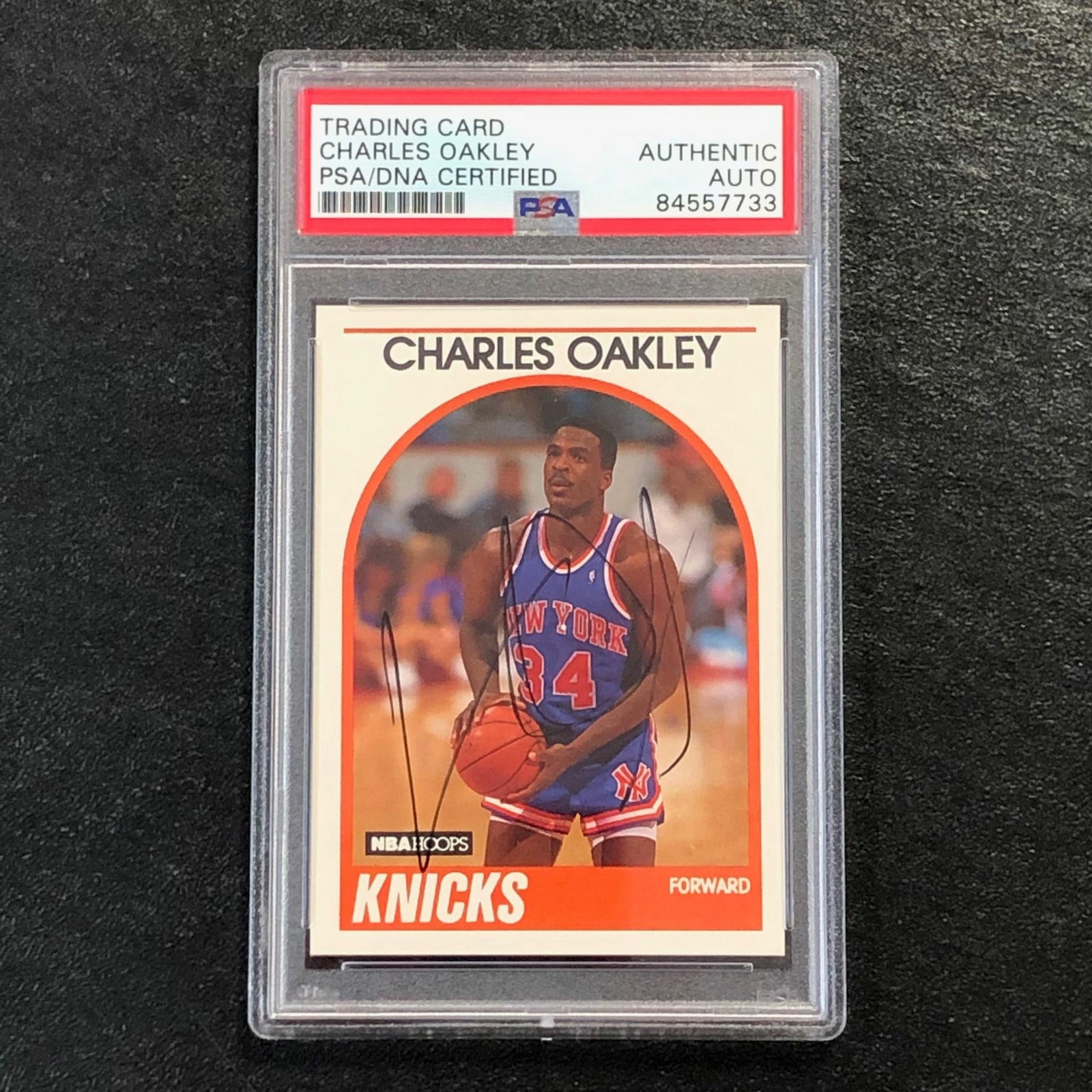 1989-90 NBA HOOPS #213 CHARLES OAKLEY SIGNED CARD AUTO PSA SLABBED KNICKS COLLECTIBLE MEMORABILIA