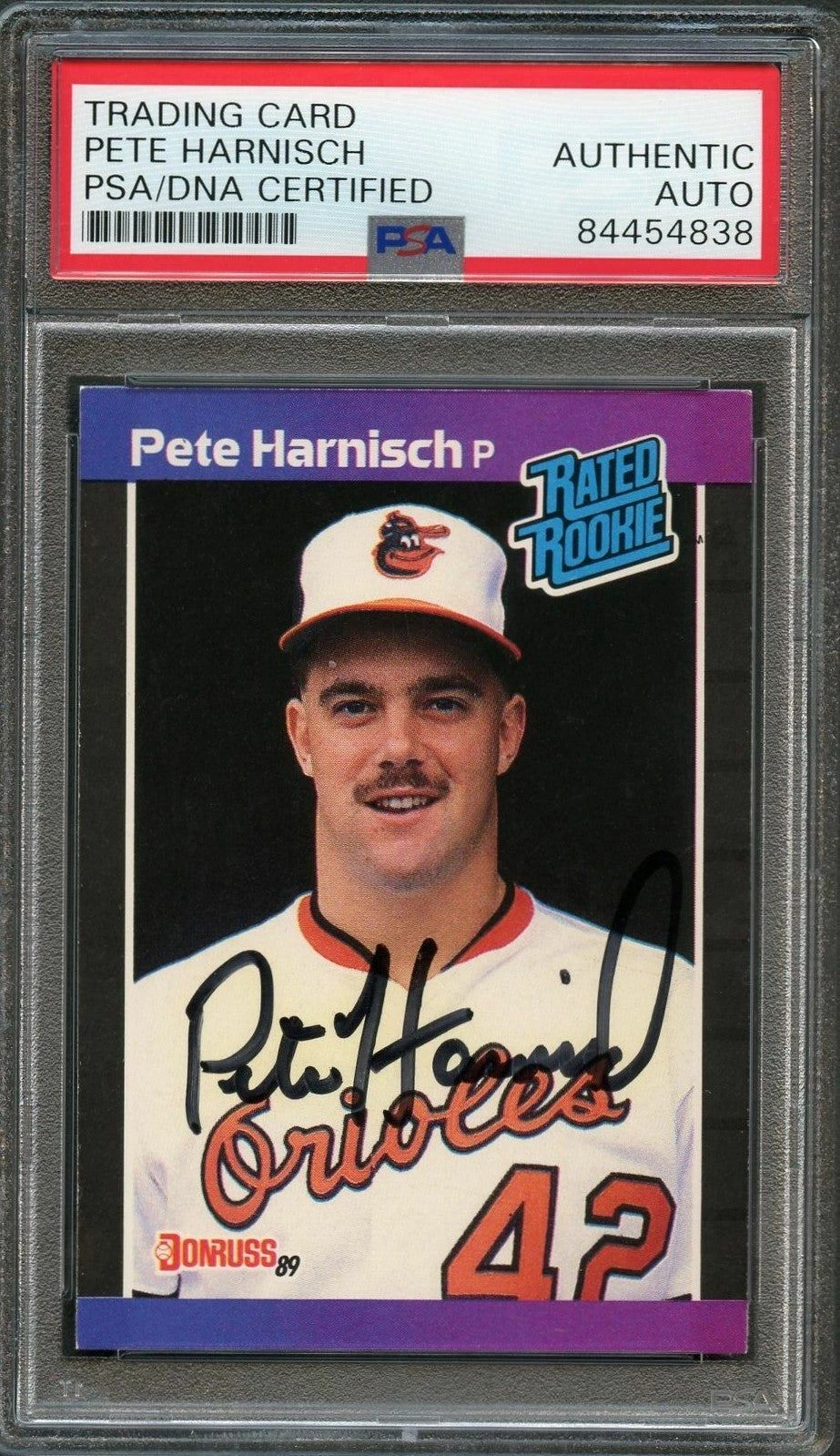 1989 DONRUSS #44 PETE HARNISCH SIGNED CARD PSA SLABBED AUTO RC ORIOLES COLLECTIBLE MEMORABILIA