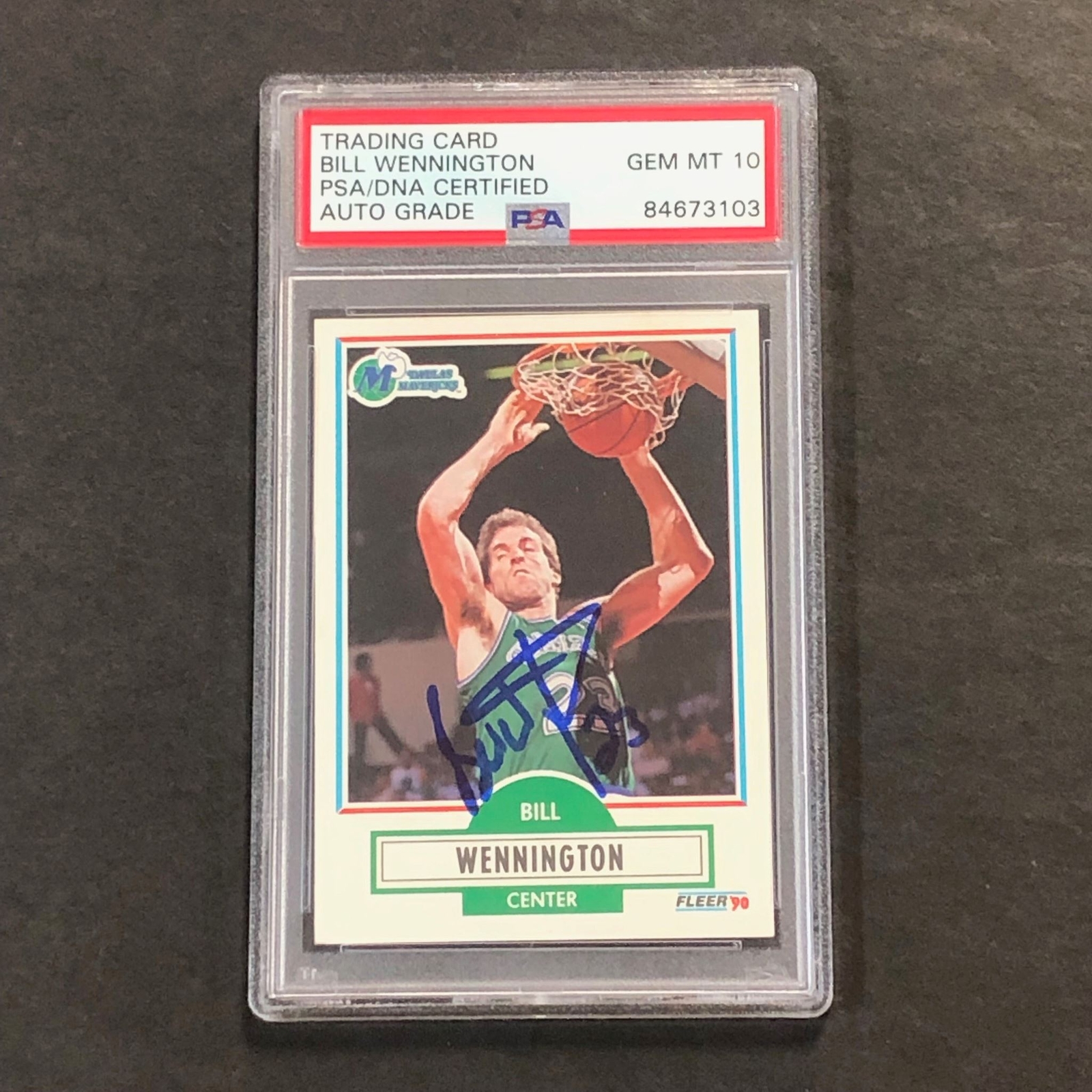 1990-91 FLEER #44 BILL WENNINGTON SIGNED CARD AUTO GRADE 10 PSA SLABBED MAVERICK COLLECTIBLE MEMORABILIA