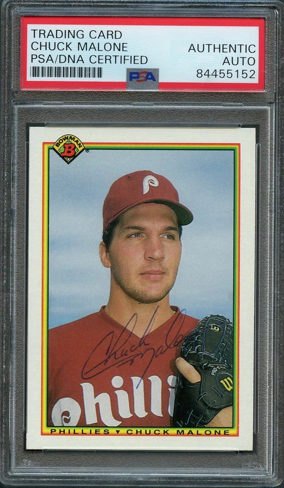 1990 BOWMAN #144 CHUCK MALONE SIGNED CARD PSA SLABBED AUTO PHILLIES COLLECTIBLE MEMORABILIA