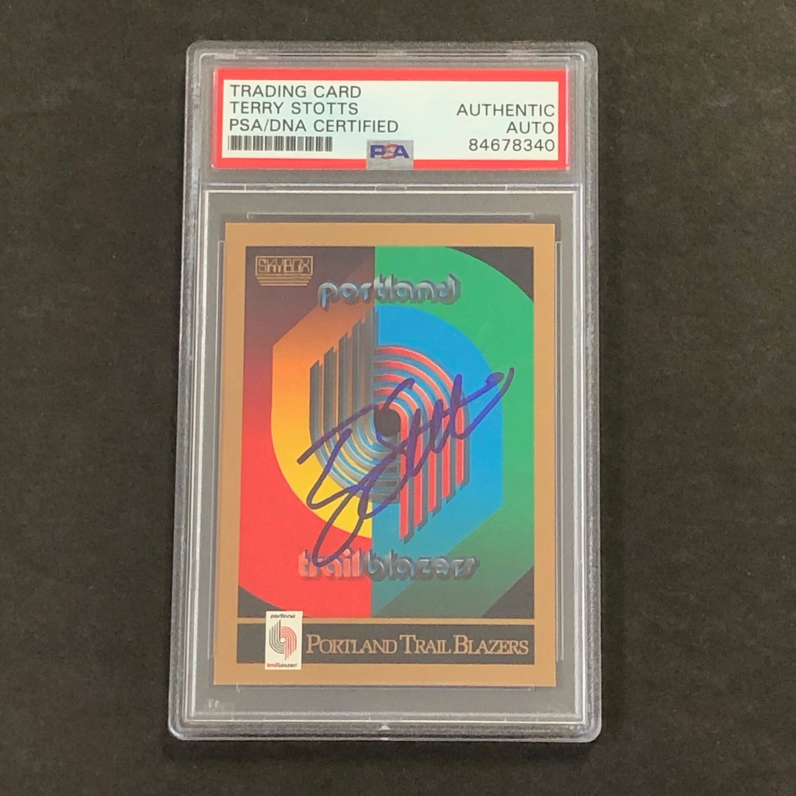 1990 NBA SKYBOX #349 TERRY STOTTS SIGNED CARD PSA SLABBED TRAILBLAZERS COLLECTIBLE MEMORABILIA