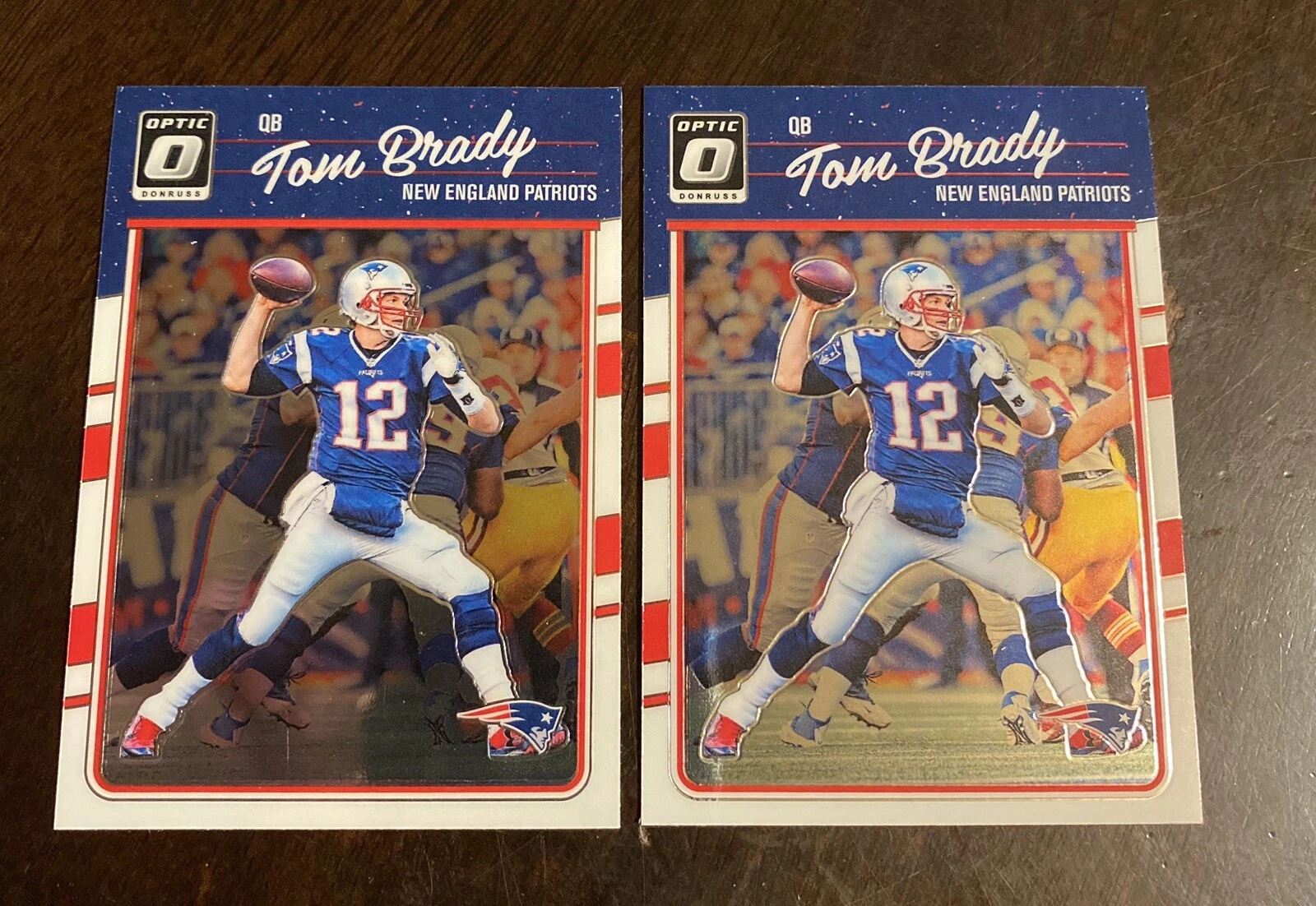 (2) 2016 DONRUSS OPTIC TOM BRADY PATRIOTS BUCCANEERS 1ST YEAR OPTIC BASE LOT COLLECTIBLE MEMORABILIA