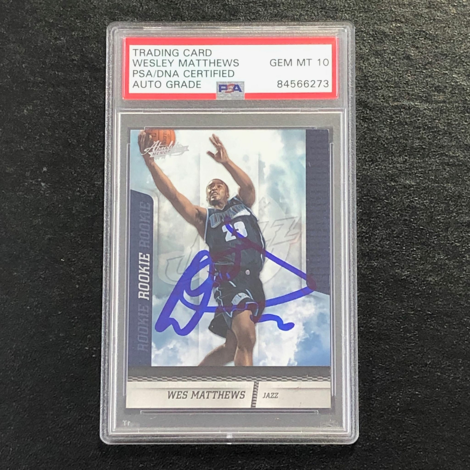 2009-10 ABSOLUTE MEMORABILIA #128 WESLEY MATTHEWS SIGNED CARD AUTO 10 PSA SLABBE COLLECTIBLE MEMORABILIA