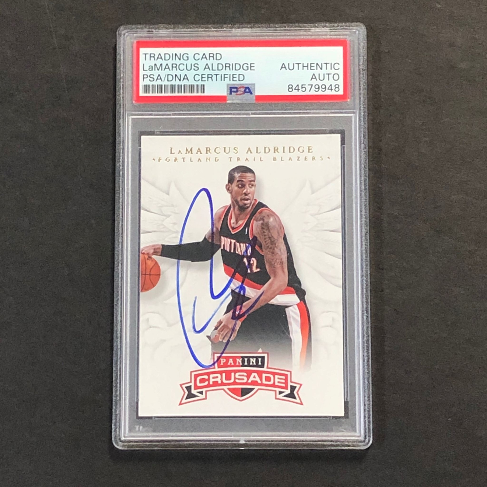 2012-13 PANINI CRUSADE #39 LAMARCUS ALDRIDGE SIGNED AUTO PSA SLABBED TRAIL BLAZE COLLECTIBLE MEMORABILIA