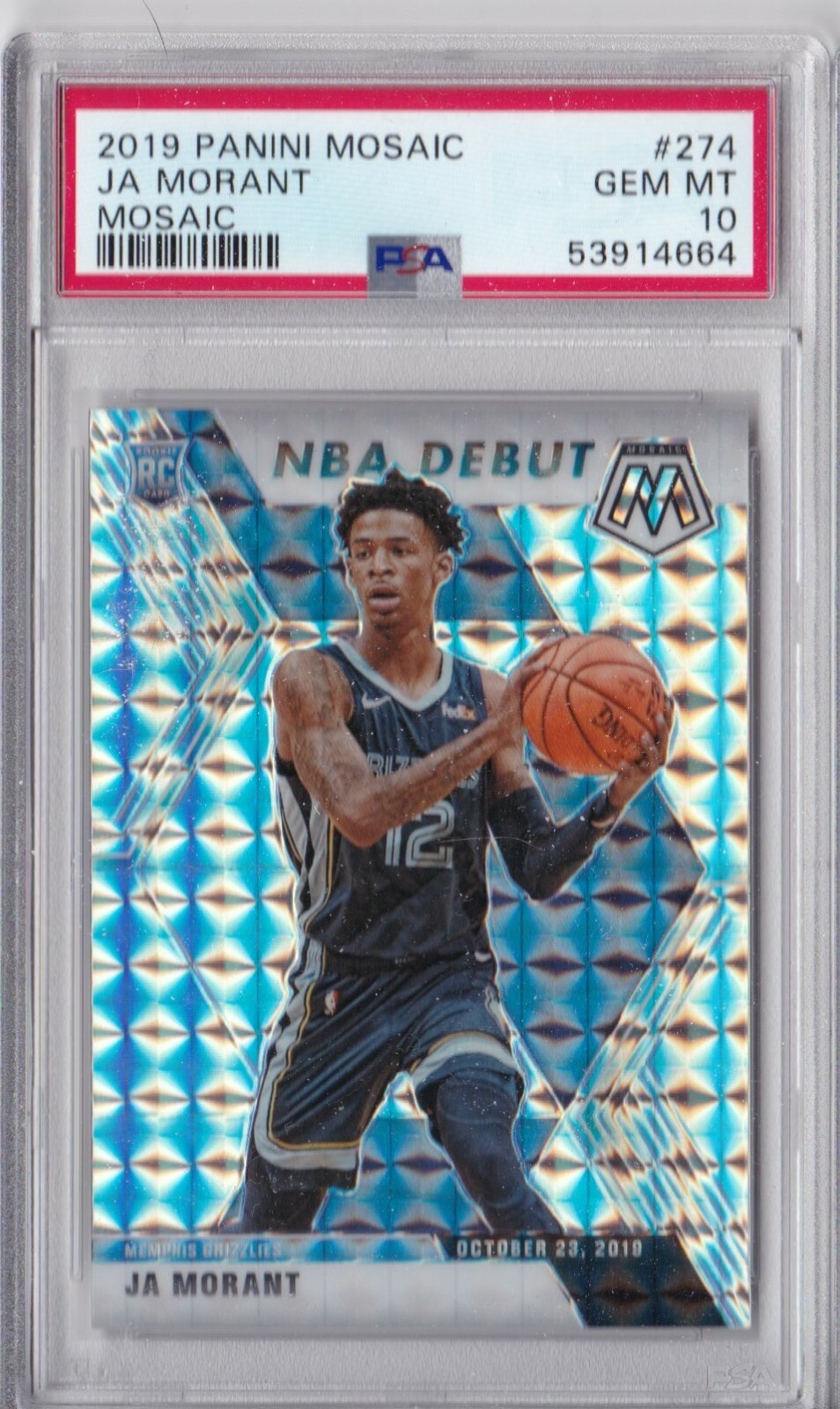 2019-20 PANINI MOSAIC SILVER PRIZM #274 JA MORANT NBA DEBUT ROOKIE PSA 10 GEM MT COLLECTIBLE MEMORABILIA