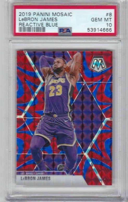2019 PANINI MOSAIC LEBRON JAMES REACTIVE BLUE PSA 10 MINT LAKERS #8 COLLECTIBLE MEMORABILIA