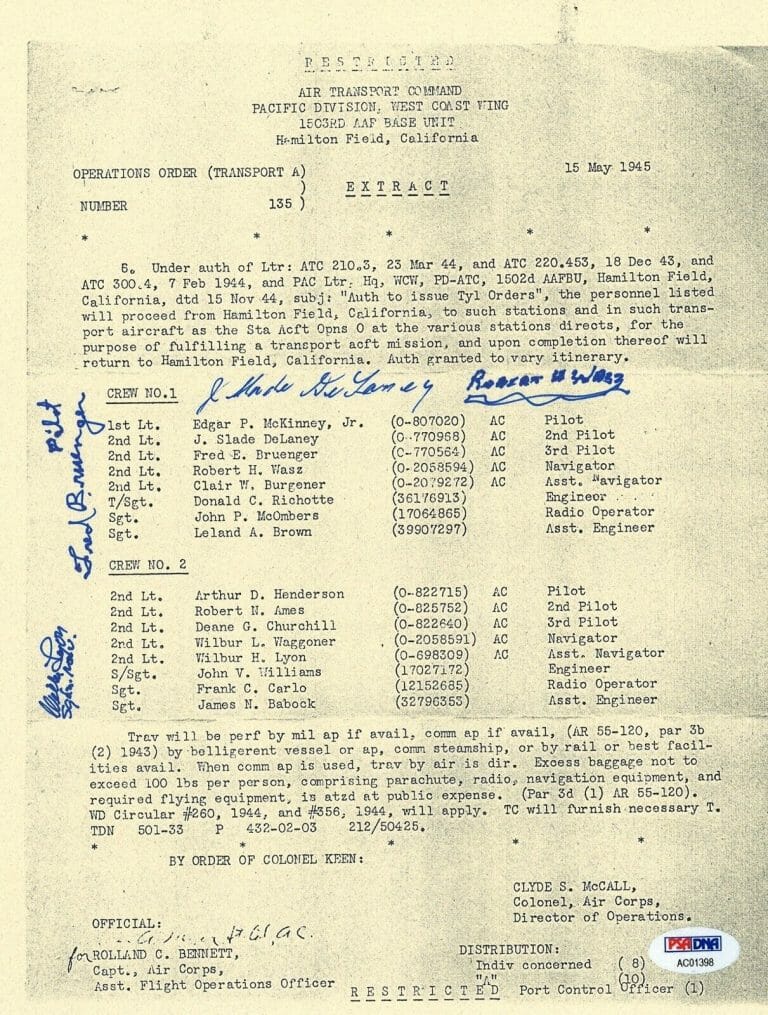 320TH TROUP SQUADRON MULTI SIGNED OPERATIONS ORDER DOCUMENT PSA DNA AC01398 X4 COLLECTIBLE MEMORABILIA