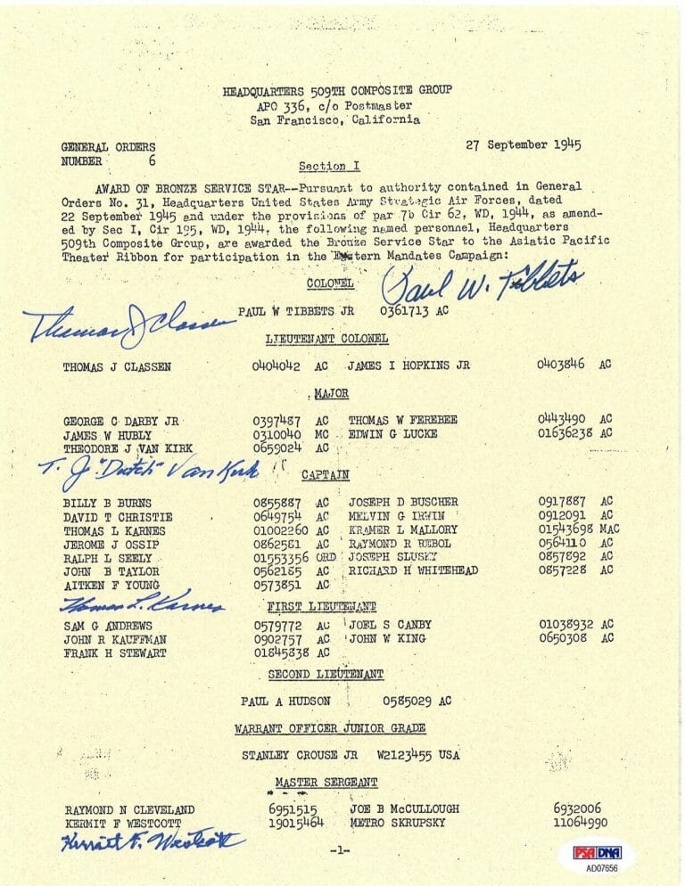 509TH COMP GROUP MULTI SIGNED BRONZE STAR DOCUMENT PSA DNA AD07656 (D) X5 COLLECTIBLE MEMORABILIA