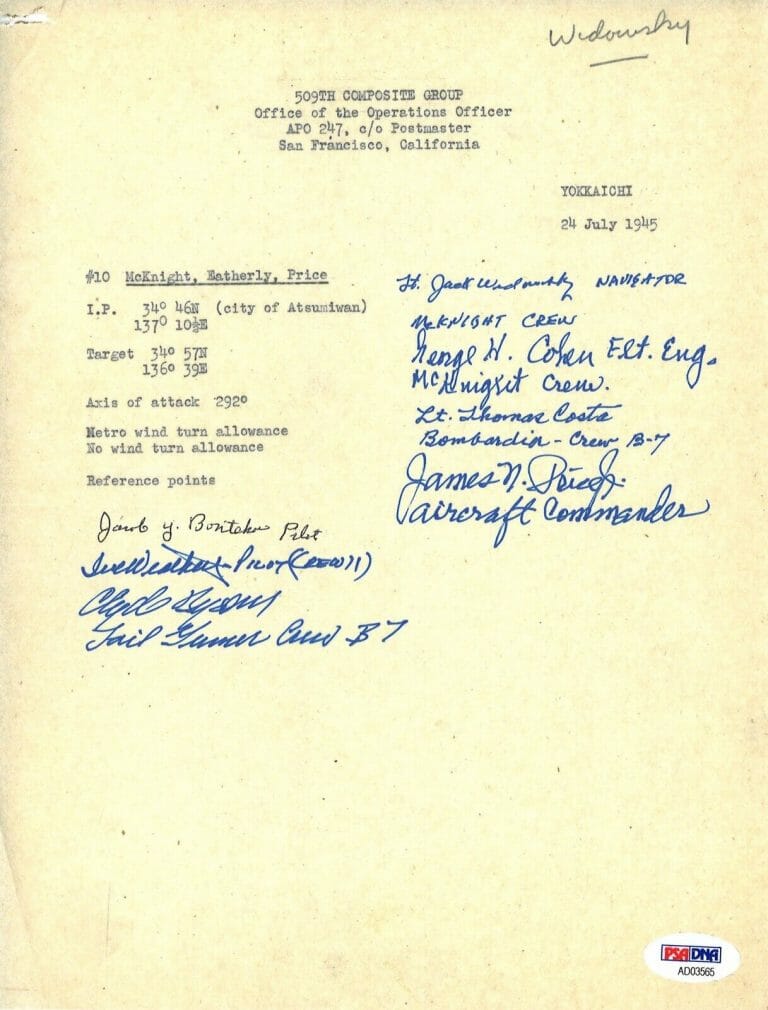 509TH COMPOSITE GROUP MULTI SIGNED YOKKAICHI DOCUMENT PSA DNA AD03565 X7 COLLECTIBLE MEMORABILIA
