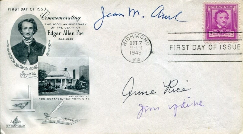 ANNE RICE JEAN AUEL JOHN UPDIKE AUTHORS SIGNED AUTOGRAPH EDGAR ALLAN POE FDC COLLECTIBLE MEMORABILIA