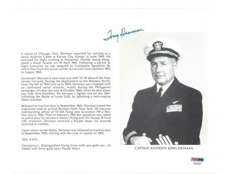 ANTHONY DENMAN SIGNED 8X10 (D) PSA DNA AC42271 WWII ACE 6 KILLS COLLECTIBLE MEMORABILIA