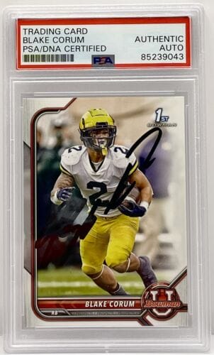 BLAKE CORUM SIGNED 2022 BOWMAN U 1ST ROOKIE CARD MICHIGAN PSA/DNA SLABBED COLLECTIBLE MEMORABILIA