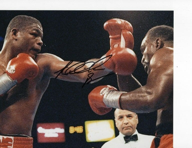 BOXER RIDDICK BOWE LEFT HOOK SIGNED 8X10 COLLECTIBLE MEMORABILIA
