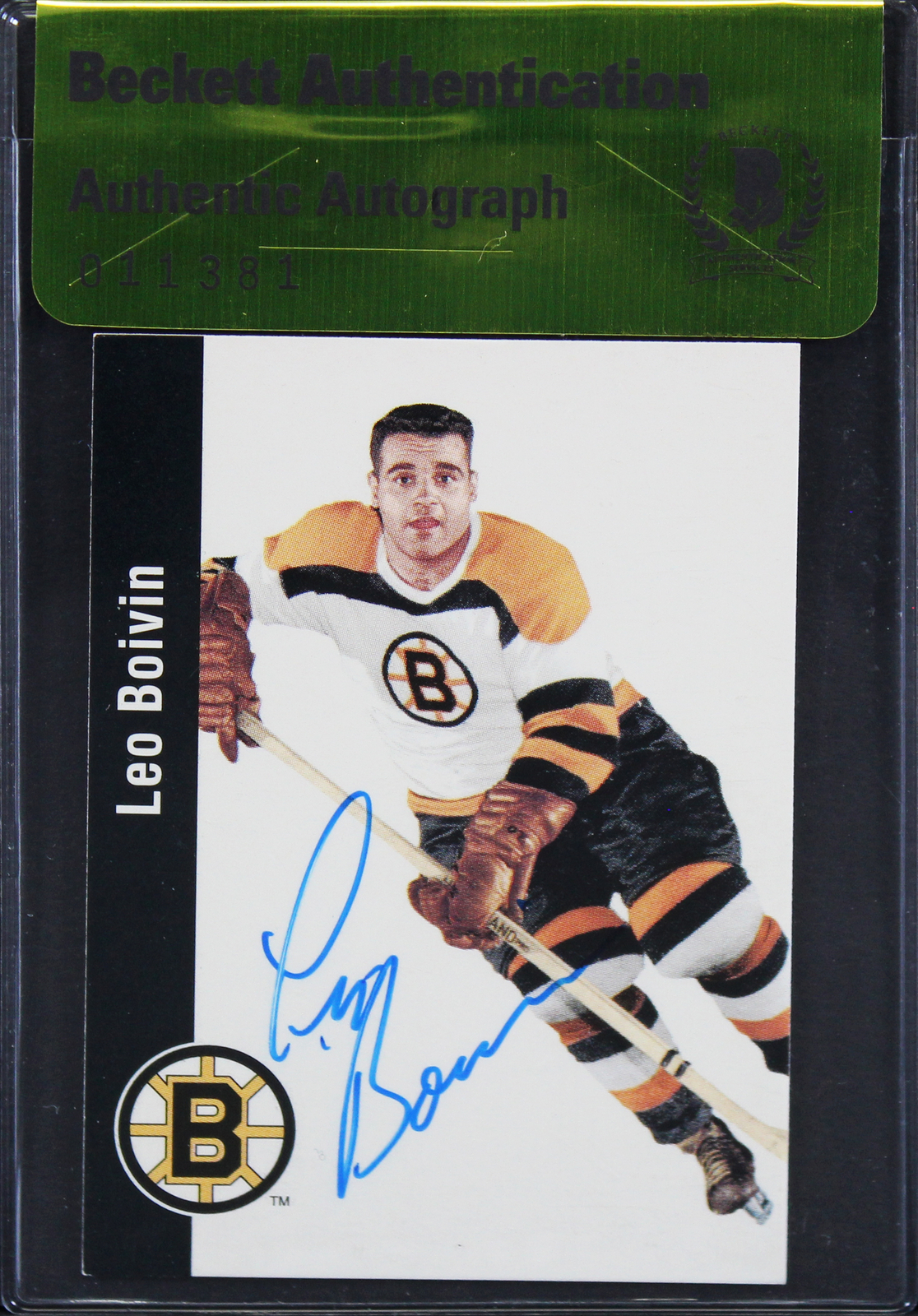 BRUINS LEO BOIVIN AUTHENTIC SIGNED PARKHURST #11 CARD BAS #11381 COLLECTIBLE MEMORABILIA