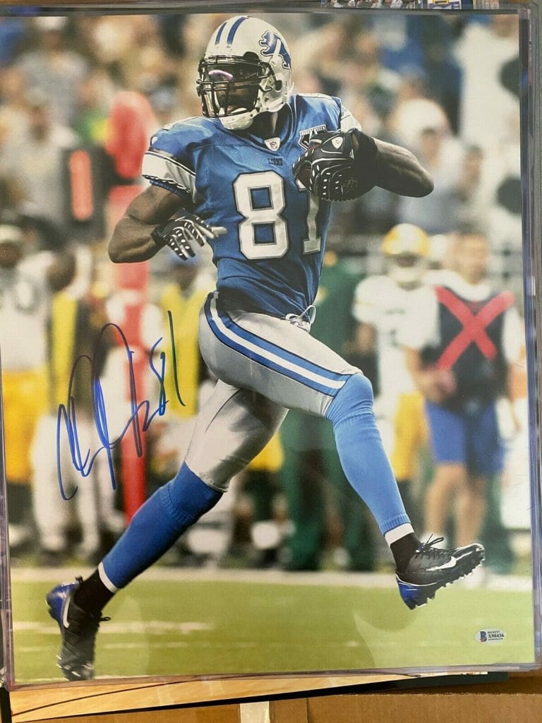 CALVIN JOHNSON SIGNED 16X20 PHOTO DETROIT LIONS BECKETT BAS AUTOGRAPH AUTO COA COLLECTIBLE MEMORABILIA