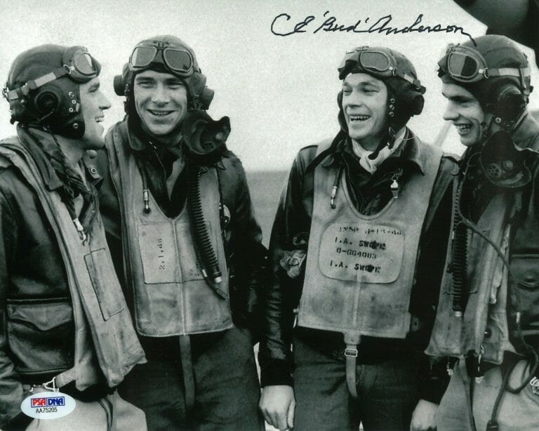 CE BUD ANDERSON SIGNED 8X10 PSA DNA AA75205 WWII P-51 ACE 16.25 KILLS COLLECTIBLE MEMORABILIA