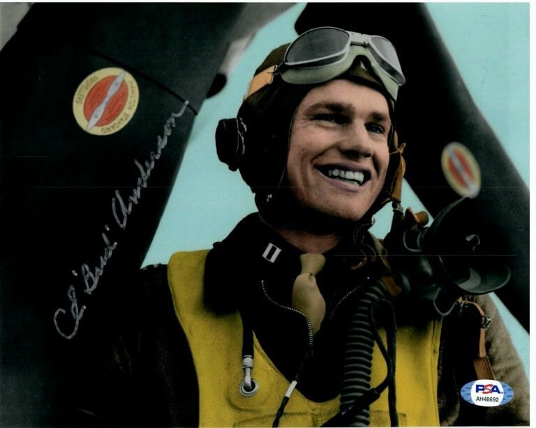 CE BUD ANDERSON SIGNED 8X10 PSA DNA WWII P-51 ACE 16.25 KILLS COLOR IMAGE COLLECTIBLE MEMORABILIA
