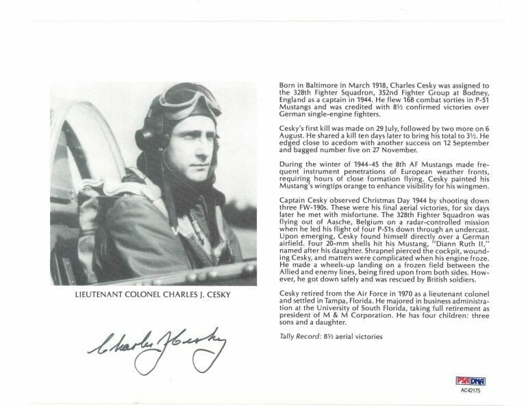 CHARLES CESKY SIGNED 8X10 (D) PSA DNA AC42175 WWII ACE 9 KILLS COLLECTIBLE MEMORABILIA