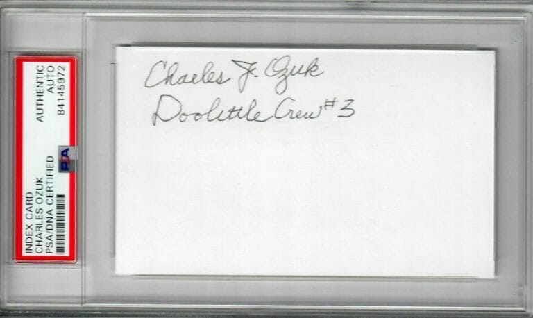 CHARLES OZUK SIGNED INDEX CARD PSA DNA SLABBED 84145972 (D) DOOLITTLE RAIDERS COLLECTIBLE MEMORABILIA