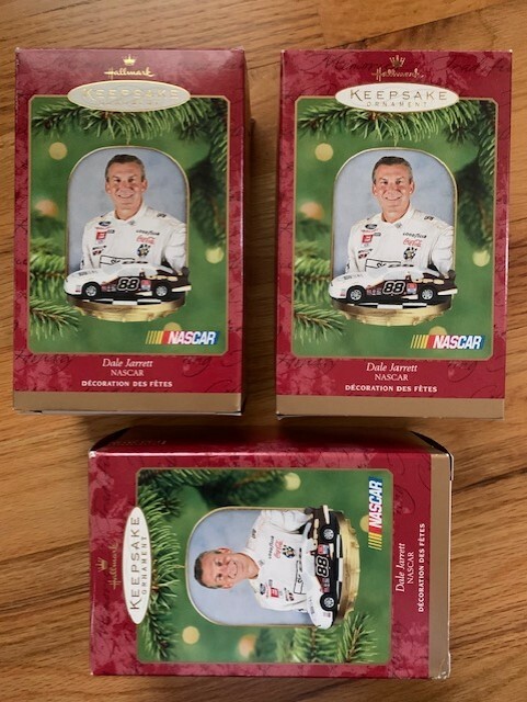 DALE JARRETT LOT OF 3 HALLMARK XMAS ORNAMENTS FROM 2001 NIB NASCAR LEGEND COLLECTIBLE MEMORABILIA