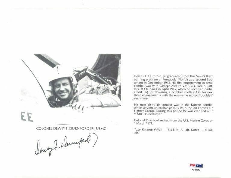 DEWEY DURNFORD SIGNED 8X10 PSA DNA AC42540 (D) WWII WAR ACE 6 1/3 KILLS USMC COLLECTIBLE MEMORABILIA