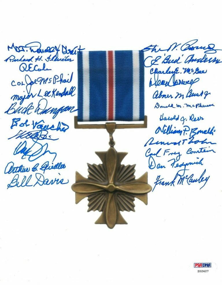 DISTINGUISHED FLYING CROSS MULTI SIGNED 8X10 PSA DNA Z02427 X23 WWII RARE COLLECTIBLE MEMORABILIA