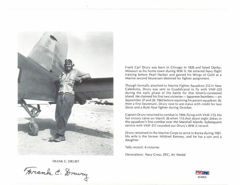 FRANK DRURY SIGNED 8X10 (D) PSA DNA AC42531 WWII ACE 6 KILLS COLLECTIBLE MEMORABILIA