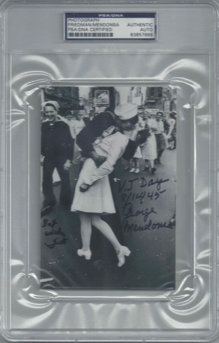 GEORGE MENDONSA GRETA FRIEDMAN DUAL SIGNED PHOTO PSA DNA 83857666 (D) 8/14/45 COLLECTIBLE MEMORABILIA
