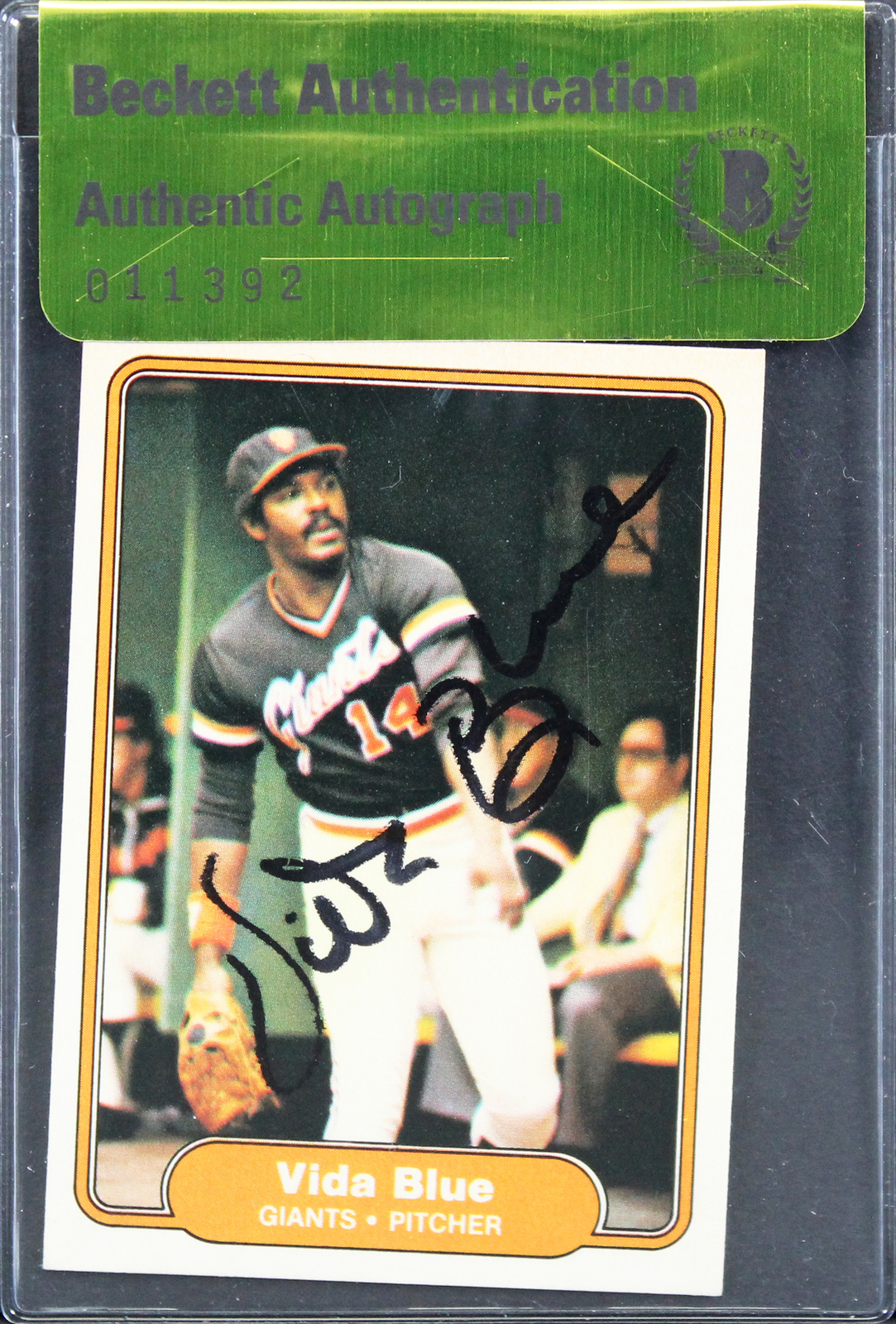 GIANTS VIDA BLUE AUTHENTIC SIGNED 1982 FLEER #384 CARD BAS #11392 COLLECTIBLE MEMORABILIA
