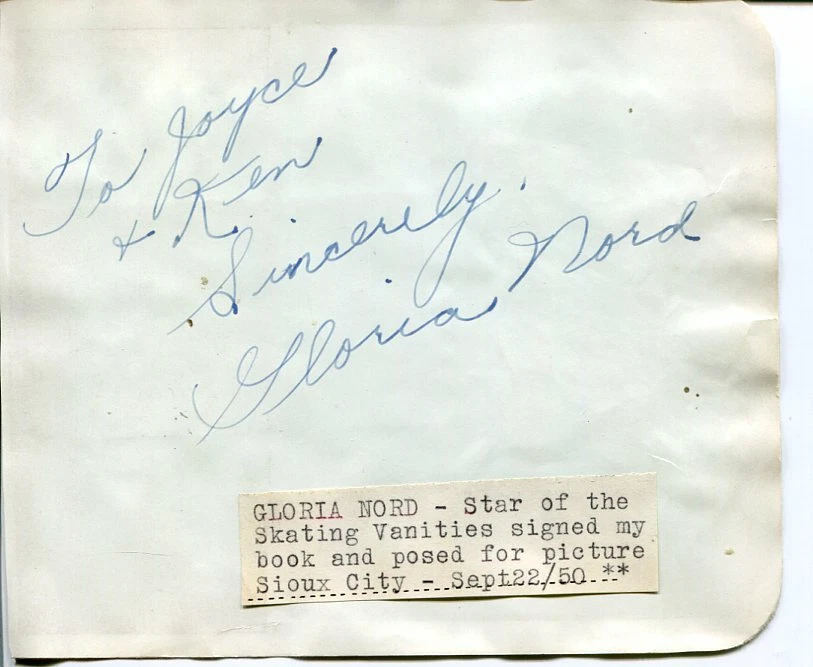 GLORIA NORD ROLLER SKATER ICE SKATER SKATING VANITIES MODEL SIGNED AUTOGRAPH COLLECTIBLE MEMORABILIA