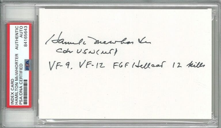 HAMILTON MCWHORTER SIGNED INDEX CARD PSA DNA 84165643 (D) WWII NAVY ACE COLLECTIBLE MEMORABILIA