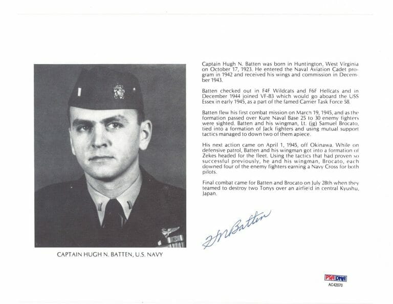 HUGH BATTEN SIGNED 8X10 (D) PSA DNA AC42070 WWII ACE 7 KILLS COLLECTIBLE MEMORABILIA